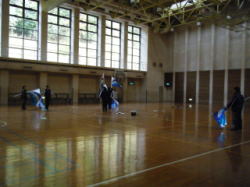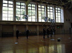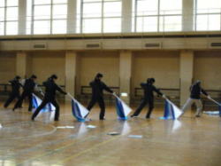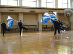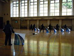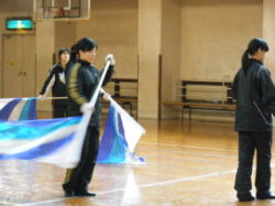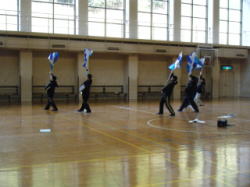 寒い体育館の中に入るとバサッバサッと、フラッグの翻る音が響いていました。