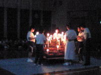 ⇒全員で輪になり中央の燭台を囲み、聖なる火を持つ火の神を迎え、燭台のロウソクに点火するつどい