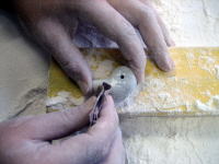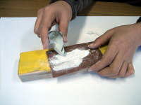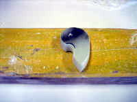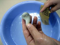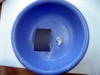 - C形ができたら、水を入れた洗面器の中で、水やすりを使って、表面が滑らかになるまで、磨き上げる。