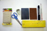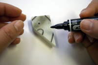 - Aマジックや鉛筆で、高蝋石に勾玉の形を下描きし、削る所を明らかにする。