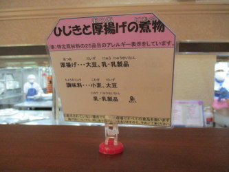 ![]() バイキング台にアレルゲン表示をしています。 |