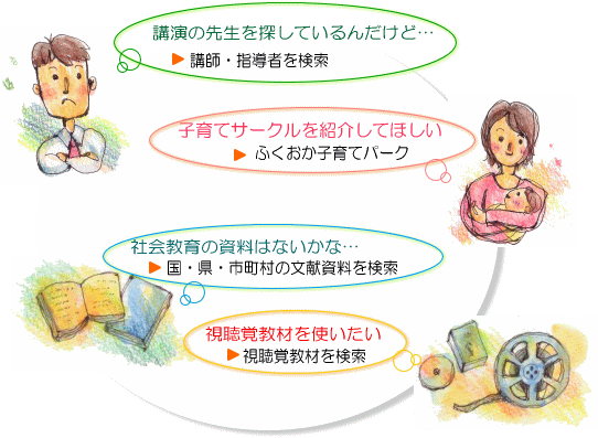 また、社会教育についての国や県、市町村が発行した資料のことについても情報提供しています。 |