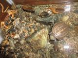 「玄海の家」に小さな仲間がやってきました。クサガメやサワガニです。「玄海の家」に来られた方々に生き物を手に取って触れたり、近くで観察したりしてほしいので、子どもの目の高さに合わせて水槽を置いています。これからも仲間が増えていくことが楽しみですね♪(2012.06.30)