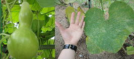 大きく育ったヒョウタンの青葉や実が下がる様子を見て、夏を感じてみませんか。(2012.07.10)