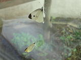 この夏、事務室でモンシロチョウを育てました。畑で育てているキャベツにくっついていたアオムシを、キャベツの葉ごと事務室にもって帰り、大事に大事に育てました。その甲斐あって、無事、3匹のモンシロチョウが飛び立ちました。事務室という大きな虫かごの中で飼おうと思っていましたが、やっぱり自然が一番ですよね。今も元気に飛びまわっているかな。(2012.07.15)