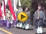 宗像大社の秋季大祭に先立ち、9月中旬に大島より御座船を仕立て沖ノ島の沖津宮に向かい、まず田心姫神(たごりひめかみ)の御神璽(ごしんじ)を大島の中津宮までお迎えする「沖津宮神迎え神事」が斎行されます。そして10月1日に大島の中津宮より神湊まで、沖津宮と中津宮の神輿(みこし)をお運びするのが海上神幸「みあれ祭」です。神湊では辺津宮の神輿がお出迎えになり、一年に一度三宮の御神璽がお揃いになります。このお祭りは古くから行われた御長手神事(おんながてしんじ)【意味:長い竹に布を付けたもの】を神のしるしとして辺津宮にお迎えした神事を再興したものです。(宗像観光情報コーナーより)