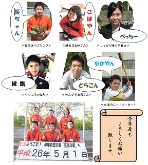 つどいの広場の花たちは満開となり、過ごしやすい季節となりました。「玄海の家」では新たな職員、指導員を迎え、気持ちを新たに頑張っています。また本年度は開所40年を迎えます。「玄海の家」節目の年に、皆さんのご利用をお待ちしております!(2014/04/02)