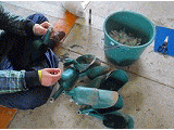 栽培漁業公社から約400匹の稚魚をいただきました。水槽の中を所せましと泳ぎまわっています。現在は5cmほどですが、春先には、今以上に大きくなって元気に泳ぎまわっていることでしょう!!