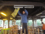 「玄海の家」では皆様が気持ち良く施設を利用できるように、職員全員で清掃を行う「職員作業日」という日を設けています。先日は野外炊飯場の清掃とかまど・机の修理を行いました。炭や灰で汚れた蛍光灯を磨き、かまども新しく作り直しました。塗装がはがれていた机も塗り直しました。きれいになった野外炊飯場をぜひご利用ください。