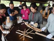 野外炊飯〜基本の「き」〜をメインに火の起こし方やナタの使い方を学び、これらをもとにカレーやピザ作りをし、おいしくいただきました。さらに、レクレーション指導やキャンドル作りの体験活動を通して、子どもと関わっていくためのボランティアとしての心得を学ぶ、研修を行いました。