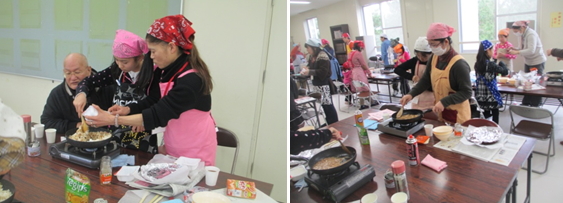 次に、親子de防災クッキングでは災害時を想定し、昼食作りを行いました。保存のきく缶詰や、レトルト食品を使い、あっという間に美味しい食事を作ることができました。子どもたちも「おいしい」とニコニコ笑顔で完食していました。
