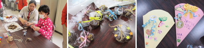 最後に、作ったブラウニーのラッピングを行いました。シールやリボンで飾りつけをしたり、メッセージを書いたりして、参加者それぞれ工夫を凝らしたラッピングができていました。