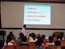 環境について考え、子どもたちにできるボランティアについて考える機会を与えるために、福津市うみがめ課の品川先生には福岡県の海の変化についての話をしていただきました。私たちに多くの恵みを与えてくれる海は、人間による海洋汚染などの影響を受けやすく、海の環境悪化が進行しているという現状を知り、「魚たちが心地よく暮らせる海にしたい」などの子どもの声を多く聞くことができました。