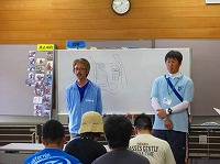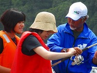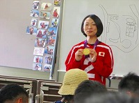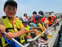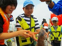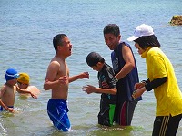 2回シリーズの第1回目は、筑前大島でのテント泊による、自然体験活動を実施しました。今回、スペシャルゲストとして、パラリンロンドン大会ピックゴールボール競技の金メダリスト、浦田理恵選手に来ていただき、「金メダルを取るための5つの秘訣」を教えていただきました。その秘訣とは、「@目標や夢をもつこと」「A絶対にあきらめないこと」「B笑顔で元気にあいさつ、返事をすること」「Cありがとうを伝えること」「D仲間を大切にすること」です。これらの秘訣を聞いた子どもたちは、その後、元気よくあいさつをしたり、大きな声で返事をしたりするようになり、キャンプの雰囲気が一段と明るくなりました。次に行った「ワクワク釣り体験」と「魚(ぎょっ)とクッキング」の活動では、自分たちが釣った魚を触ったり、さばいたり、調理して食べたりする体験をしました。魚に触った子どもたちは、その魚の大きさや形、そして、うろこの手触りに驚き、「わーすごい!」との歓声をあげ、うみんぐ大島の海上釣堀に歓声が響いていました。他にも、テントを自分たちで設営して泊まるテント宿泊体験、海水浴ではヤドカリや小魚に触れる体験することができ、笑顔あふれる楽しいキャンプになりました。