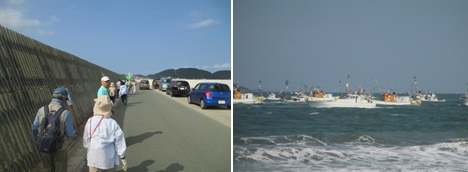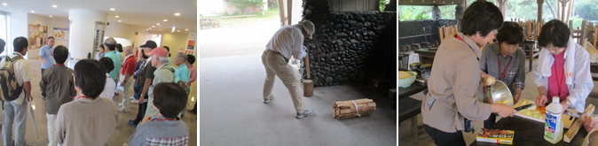 海の道むなかた館の見学は、施設の方の説明を聞き、展示を見ました。野外炊飯では、班で協力してカレーを作りました。夜には、みあれ祭の前夜祭ということもあり、花火を見ながら交流を行いました。