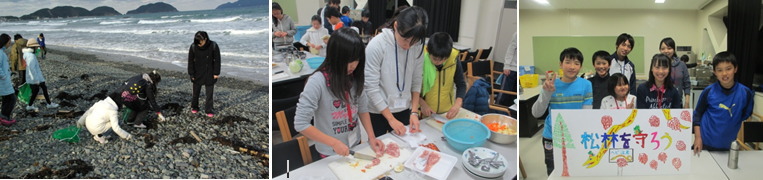 二日目には海岸の清掃を行い、ゴミがたくさん流れついていることを知るとともに清掃後のきれいになった海をみて、海と自分自身がすっきりとする感覚を覚えたようです。