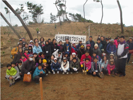 「さつき松原再生プロジェクト」で松苗の植樹の様子 |