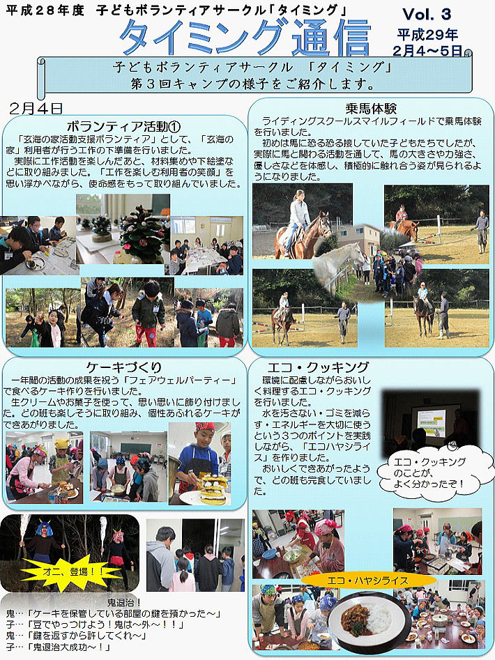 子どもボランティアサークル 「タイミング」 第3回
