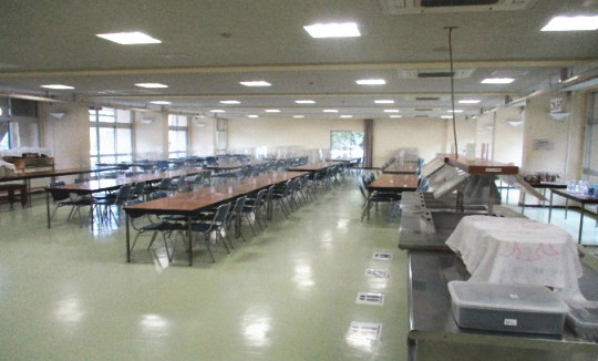| 英彦山青年の家施設紹介 第一弾 今回は食堂を紹介したいと思います。 青年の家の食堂は、第一食堂137名と第二食堂32名の合計169名が入る食堂になっています。メニューは日ごとに変わりますが、朝食では味噌汁が寝起きの体にしみ、昼食では午後からの活動が頑張れるようなメニューになり、夕食では一日の疲れを癒す食事になっています。 また、第二食堂は福岡県各市町村の物産品のイラストを掲示しております。 施設利用される際は、食堂をぜひご利用してください。 |
