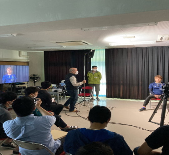 | 企業の研修でも利用可能です! 英彦山青年の家では、学校のふれあい合宿だけでなく、企業の方々でも利用ができます。この写真はFBS福岡放送さんがご利用された時の写真になります。 照明の位置やカメラの方向など映像に関しての研修を行っていました。 キャンファイヤー等で親睦を深めながら、研修を進めていく研修計画に 青年の家の職員も学ぶものがありました。 ぜひ企業さんの利用もお待ちしております! |
