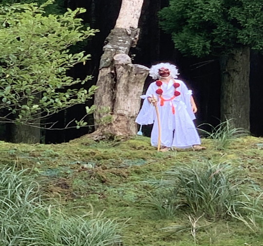 | 9月4日(日)主催事業に参加していた子供たちの視線の先には、なんと「テング」がいました。 高住神社のある英彦山は、九州随一の修験道の修行場であり、その関連からテングの住まう聖地と言われています。 そのテングが姿を現し、主催事業に参加していたご家族を職員と一緒に見送ってもらいました。 |