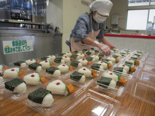 | いつも利用者のみなさんに食堂を提供する食堂の方々の様子です。 朝食作り・片付けを終わって一休み・・・かと思いきや、お昼のお弁当作りに奮闘中でした。この日は、おにぎり弁当、のり弁当、合計150個ものお弁当を作っていました。 英彦山青年の家では、利用者の方々の有意義な研修となるように、おいしい館内食やお弁当の提供をしています。ぜひ、英彦山青年の家にお越しください。 |