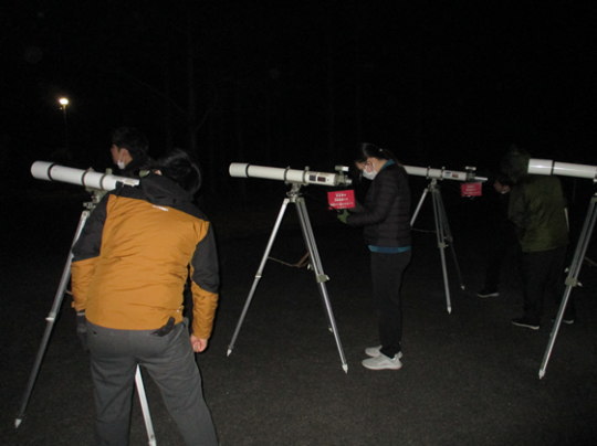 | みなさんは英彦山の魅力といえばどんなものを思い浮かべますか? 新緑の美しさ、紅葉、歴史、ススキ、夏の涼しさ・・・ たくさんある中でも今の一番のおすすめはきれいな星空! 星空は1年中きれいですが、冬場の星空は絶景です。 写真は、星空観察の説明ができるように望遠鏡の使い方を研修している様子です。 きれいな満月に、赤い火星、土星の環、望遠鏡を通じて見ることができます。 ぜひ、英彦山青年の家に星空観察にきてください! |