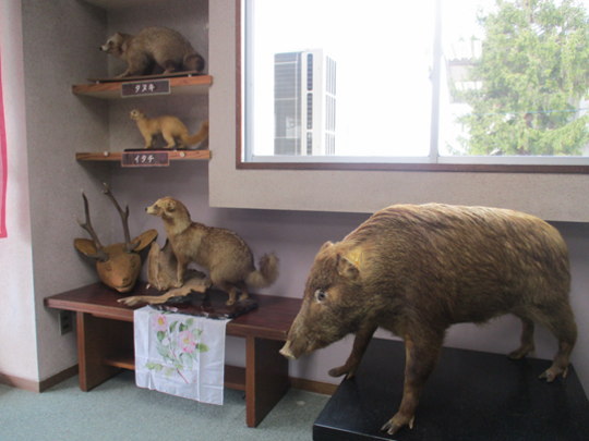 | 英彦山青年の家に資料展示室を整備しました。 写真は、英彦山に生息する動物のはく製です。その他にもほら貝や行事写真、山伏の衣装などなど、英彦山の歴史を感じる一室となっています。 英彦山青年の家をご利用の際はぜひ、ご覧ください! |