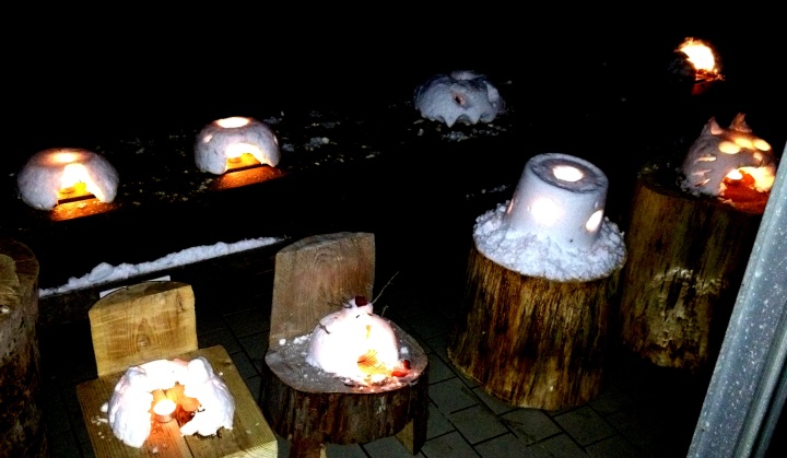 夜にスノーキャンドルを灯せば、すてきなムードになりますよ!