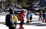 チャレンジ冬山登山をお待ちのみなさん!いよいよ登山が迫ってきました。路面の状況に気を付けられておいでください。そり遊びに来られるみなさんは、そりを無料で貸し出し中です! |