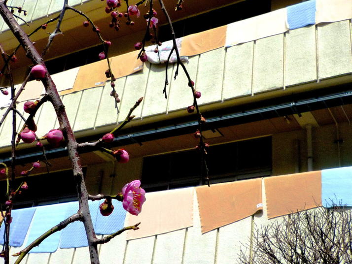 ↑寒さの中で開花を