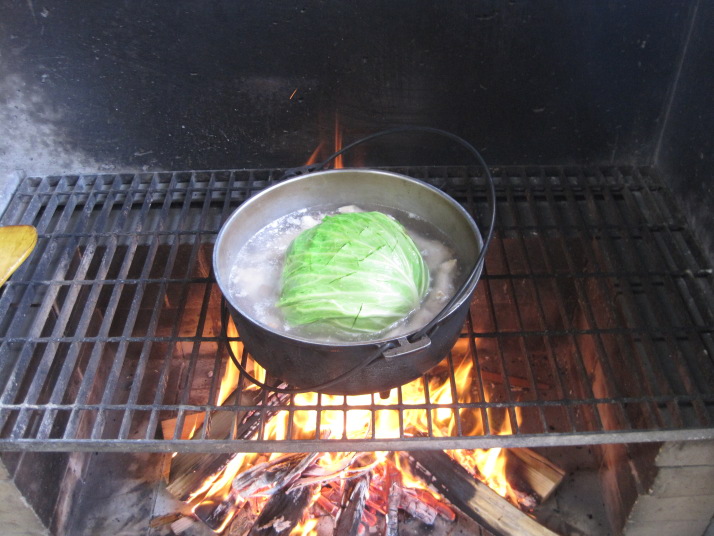 ↑夕食はダッチオーブンを