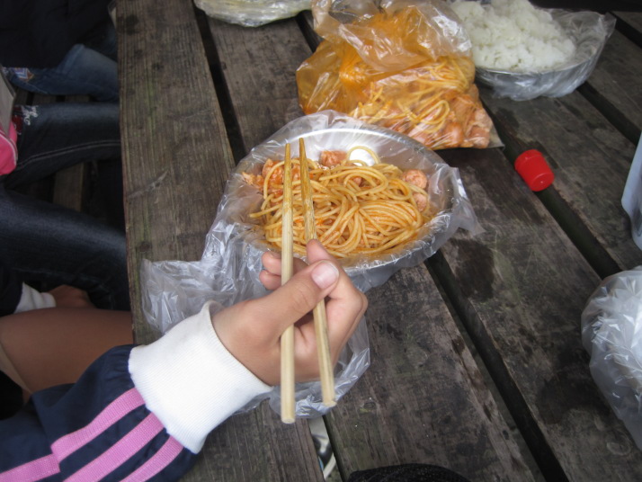 ↑2日目の朝食は、サバイバル