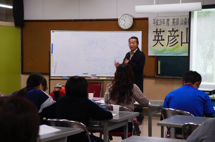 講話される青木先生 |