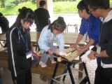 6月21〜22日に「青年リーダー・ボランティア研修in英彦山」を開催しました。1日目は九州あそびの研究所所長の中島先生から、楽しみながら信頼関係を築く仲間づくりの指導者としての考え方についてレクリエーションを体験しながら学ぶことができました。2日目はクラフト活動(英彦山将棋の製作)を行いました。また、この日は「英彦山森林環境ボランティアT」を同時に開催し、午前中は、遠賀川源流サケの会会長の青木先生に「福岡県の森林の現状について」の講話をしていただきました。午後からは、館内グリーンアドベンチャーや間伐材を使ったクラフト活動(杉の木を使った「キーホルダー」や「ネームプレート」作り)に挑戦しました。