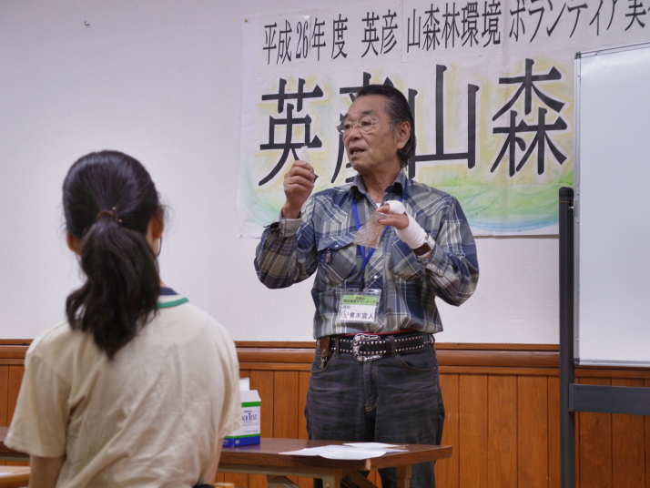 | ↑野外活動について発表する参加者 |