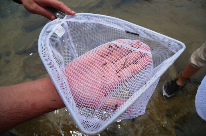 | タモ網を使って採取しました |