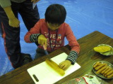 ↑バンブークーヘンをつくる参加者 |