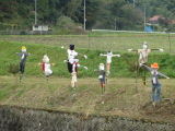 ↑上津野地区村づくり協議会会長夫婦を範したカカシです |