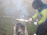 | ↑野外調理の安全管理について学ぶ参加者 |