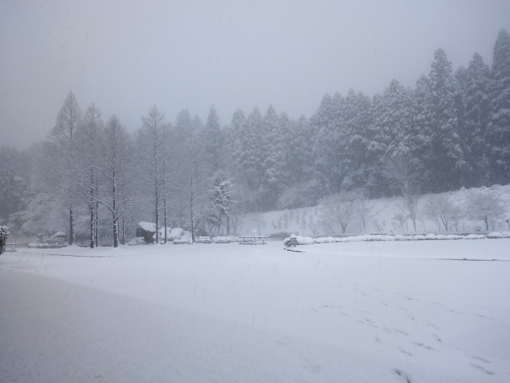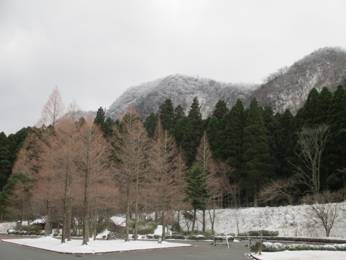 12月に入り、今シーズン一番の寒気が流れ込み、青年の家にも雪が降りました。山々は白い雪景色。国道500号の柳峠と別所豊前坊で積雪によるチェーン規制が発生しました。
