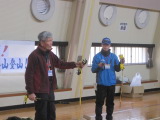 初日、地元のスロープカー花駅体育館(旧英彦山小学校)に集合しました。当初、雪道の中を歩く予定でしたが、雪がなかったために、講師の園川氏に、花駅体育館において、冬山登山における道具の取り扱い方の説明をしていただきました。終了後、花駅体育館から青年の家までの道のりを、参加者全員で歩きました。青年の家到着後、講師の園川氏に、体験談を交えながらの講話をしていただきました。参加者は、雪山の魅力と危険について、改めて深く考えることができました。講話終了後、講師を囲みながら、参加者と青年の家スタッフとで、情報交換会を行い、共通の趣味を持つ仲間やスタッフと交流しました。