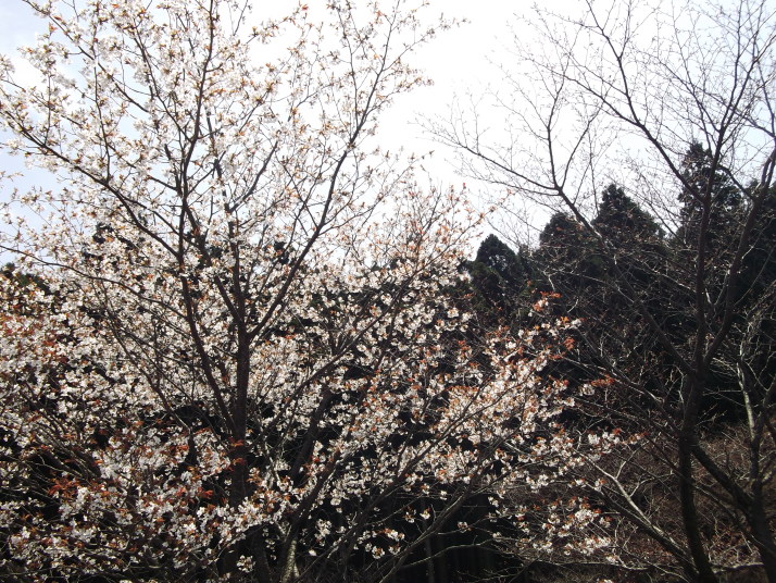 | 英彦山青年の家のあちらこちらに、ヤマザクラが花をつけていました。 |