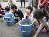 水生生物を採取して、祓川