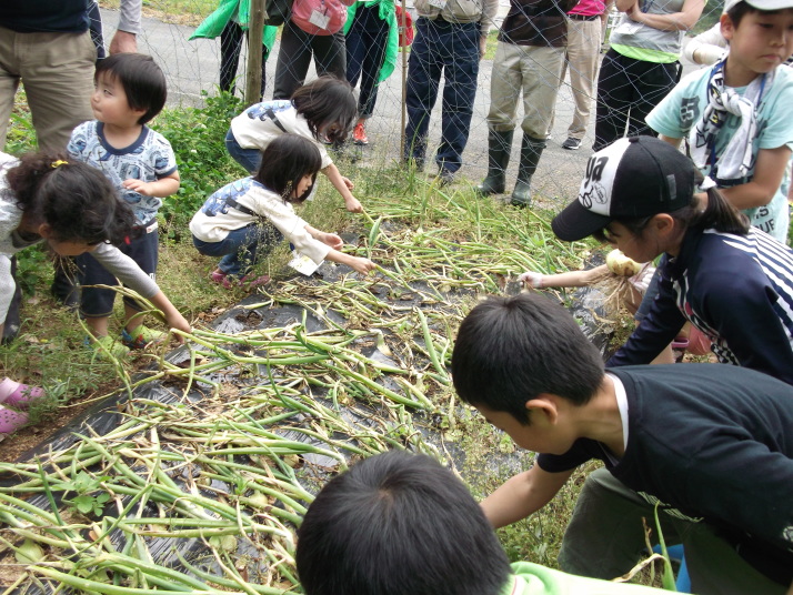 | 力を合わせてたまねぎ収穫 |