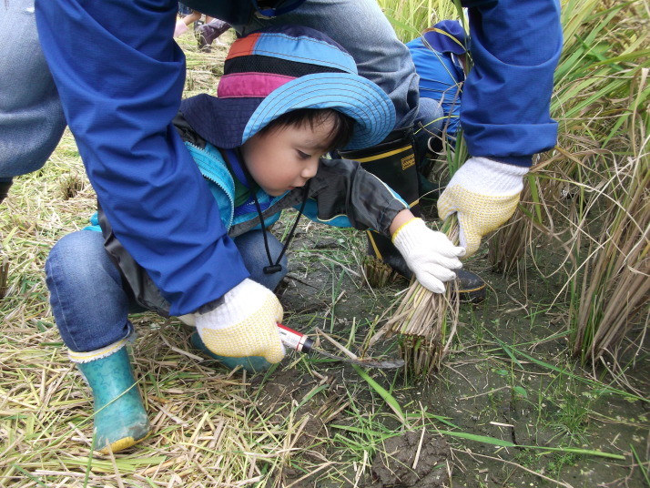 特に「稲刈り体験」では、保護者の方が、お子さんの手を取り、一緒に稲刈りをしている様子が印象的でした。そして、参加者全員ですべての稲を刈り取ることができました。多くのご家族からは「とてもいい体験ができました。」という感想が聞かれました。