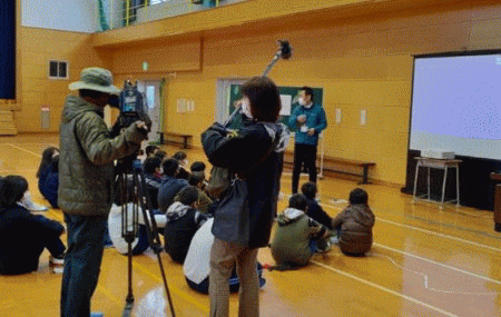 出前隊がKBCテレビ「シリタカ!」から取材を受けました。今回の出前隊は、川崎町立川崎東小学校5年生31人に火起こし体験と野外調理(カレー)の指導をしました。火起こし体験では、ファイヤースターターを何度も何度もこすり合わせて、やっとの思いで火がつくと「やったー!ついた!ついた!」と歓声があがっていました。火起こしで付けた火を大切に育てて、大きな火にしてカレーとご飯をかまどで作りました。
