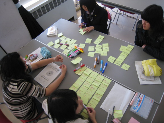 2日目は、九州女子短期大学の大島まな准教授によるユースボランティア研修のまとめをKJ法を用いて行いました。