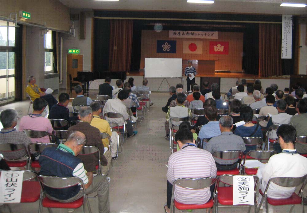 1日目は、安全にトレキングを行うための講演を行いました。その後添田町主催の英彦山山開き前夜祭に参加し、地元の文化にふれあい、地域の方と交流を行いました。