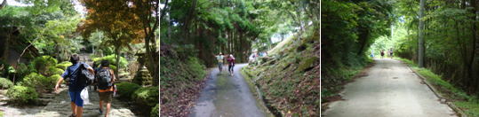 | ↑表参道の長い階段 ↑やっと正しい道に出られたぞ ↑遠くから大きな声で「リーダー!」 |